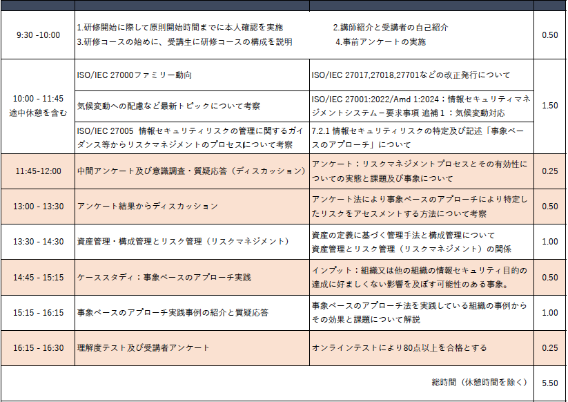 • 本コースでは、ISMSにおいて最も重要なリスクマネジメントプロセスについて、実践的に学習します。